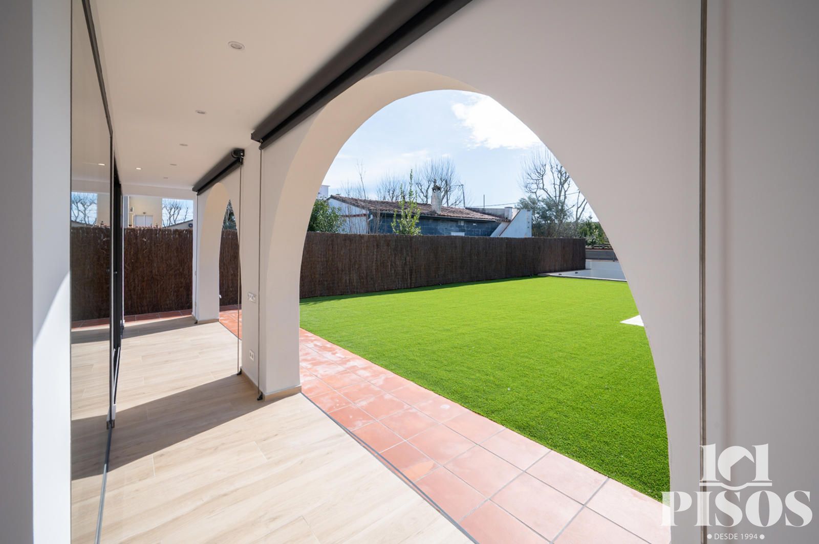 Terraza esquinera con vistas abiertas al jardín