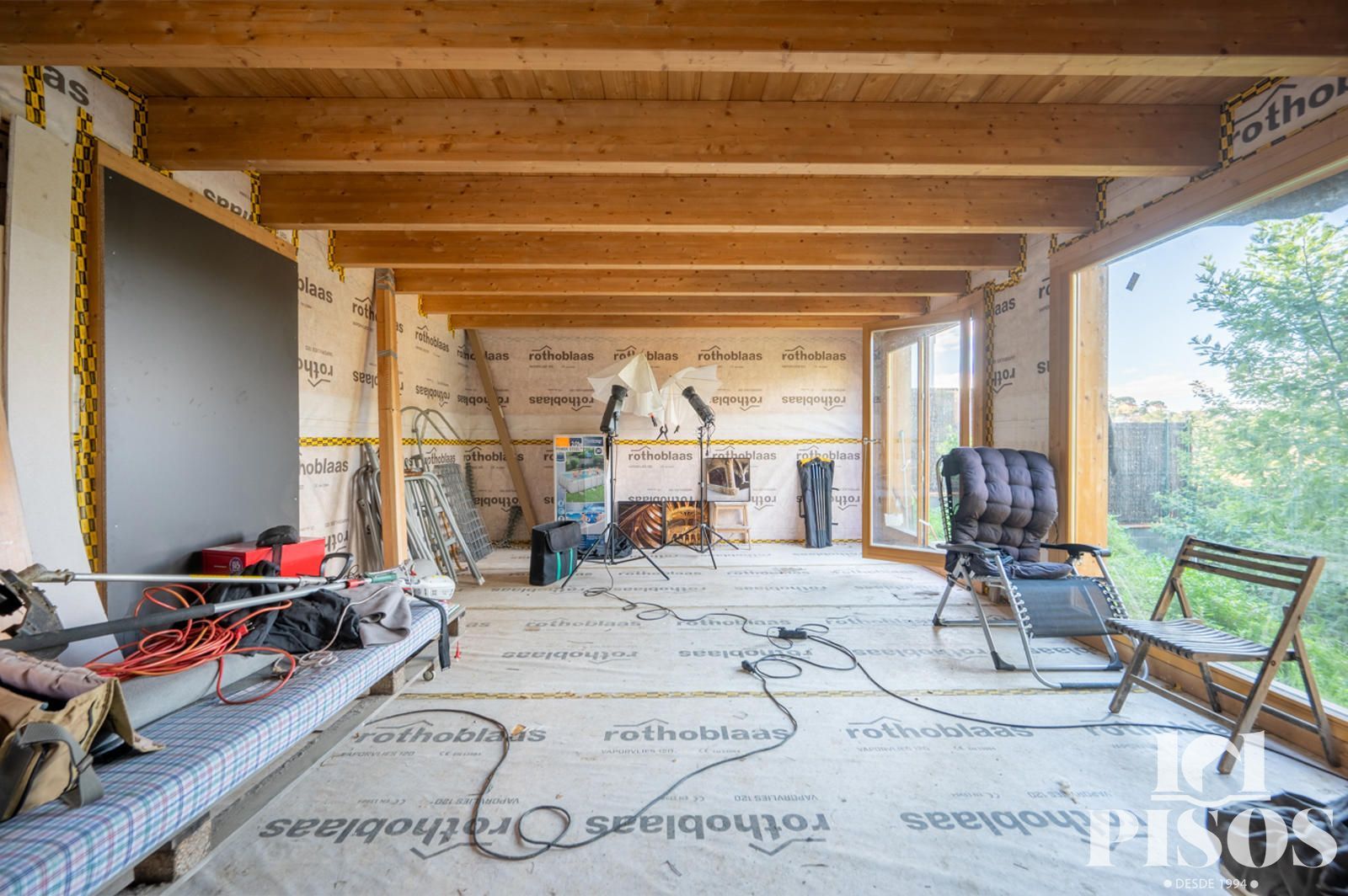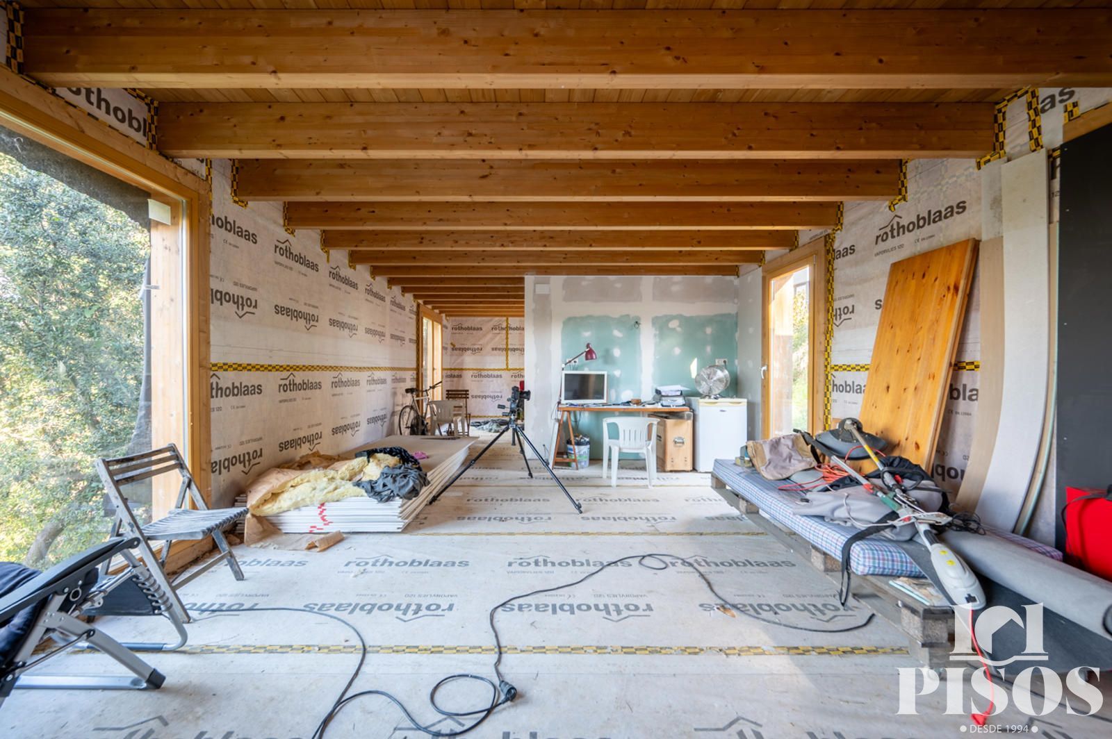 Cierres con ventanas de madera alemana Climalit con puente térmico, mejorando el aislamiento térmico y acústico