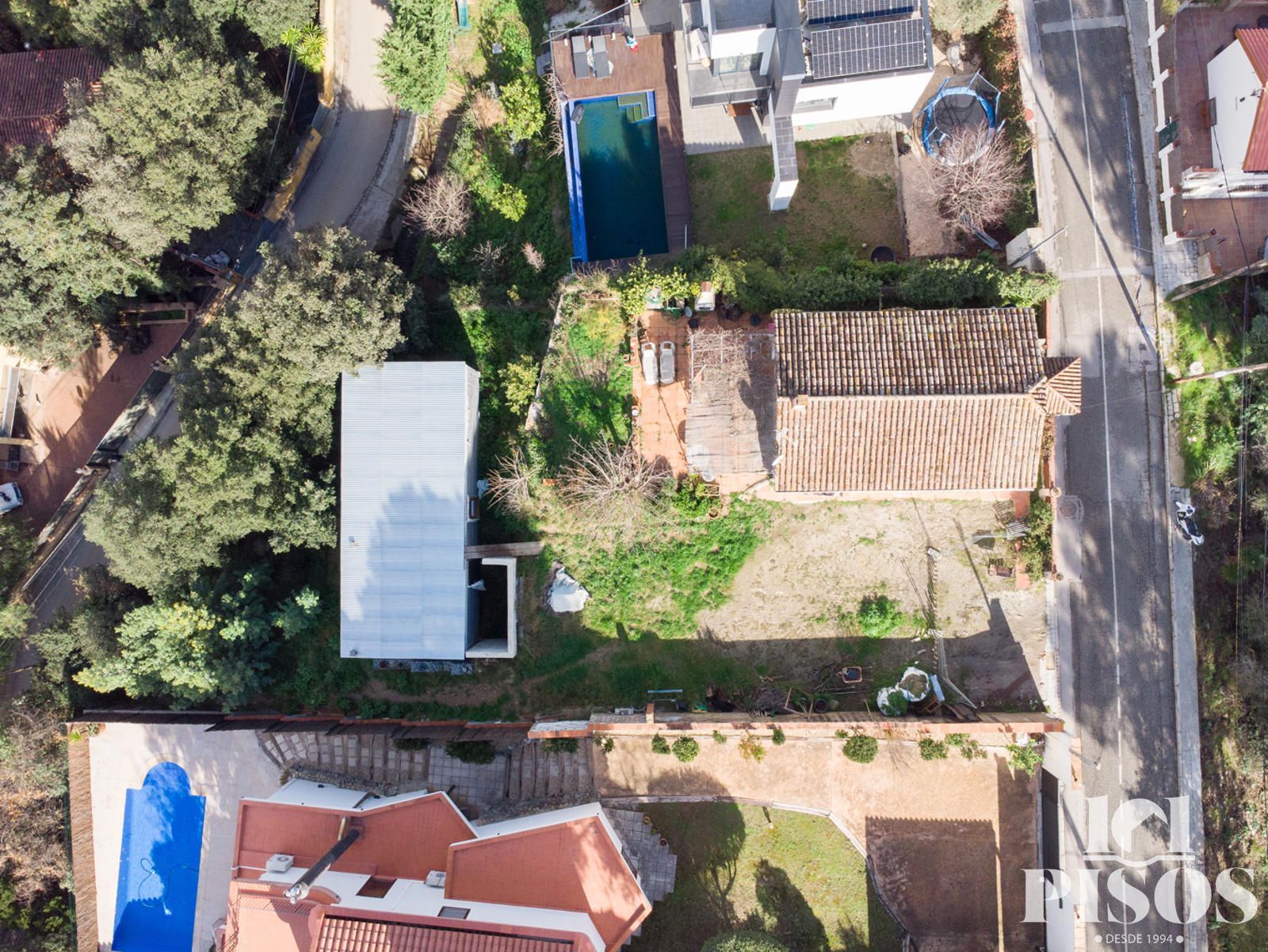 La propiedad se encuentra en una parcela elevada de 962 m², con aproximadamente 500 m² completamente planos, perfectos para disfrutar de jardín, zona de ocio, huerto o piscina, y el resto en pendiente, donde se ubica una construcción auxiliar adicional.